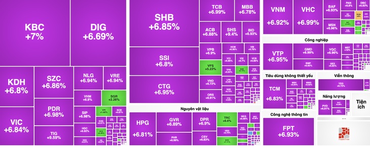 Thị trường chứng khoán Việt Nam đồng loạt “xanh, tím” sau thông tin hoãn áp thuế từ Mỹ