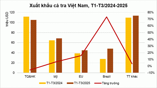 Tại thị trường Mỹ, kim ngạch xuất khẩu cá tra trong tháng 3 đạt khoảng 29 triệu USD, tăng 28% so với tháng trước. VASEP cho biết việc Mỹ hoãn áp dụng mức thuế đối kháng 46% thêm 90 ngày đã tạo điều kiện để các nhà nhập khẩu kịp thời vận chuyển hàng, đồng thời mở rộng tìm kiếm đối tác từ các thị trường khác.