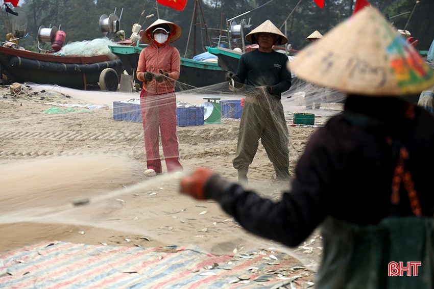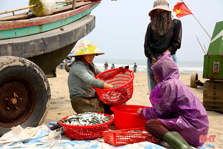 Vào mùa cá trích (bắt đầu từ cuối tháng 2), vùng biển xã Xuân Yên, Nghi Xuân luôn tấp nập tàu thuyền ra khơi.Tàu thuyền cập bến mang theo những mẻ lưới nặng cùng niềm phấn khởi của bà con ngư dân.Ngư dân Nguyễn Văn Chiến, thôn Yên Ngư cho biết: “Cá trích sống cách bờ chừng 3 – 5 hải lý, thường bơi trên mặt nước theo đàn. Tùy theo thời tiết, ngư dân sẽ ra khơi vào 3 – 4 giờ sáng, đến khoảng 9 – 10 giờ cùng ngày thì trở về”.Để rũ cá ra khỏi lưới, chủ thuyền huy động 4 – 5 người cùng tiến hành công việc.Những con cá rơi xuống bạt được người dân thu gom.Theo bà con ngư dân, hiện đã vào giữa mùa đánh bắt cá trích. So với các vùng biển khác trong tỉnh, thời điểm này, vùng biển Nghi Xuân đang có sản lượng đánh bắt khá lớn. Trung bình mỗi tàu vươn khơi mang về từ 1 – 2 tạ cá, có khi 5 – 6 tạ.“Chuyến đi biển lần này may mắn trúng luồng cá trích với gần 6 tạ cá, trừ chi phí khoảng 300 nghìn đồng, thuyền của tôi thu về hơn 5 triệu đồng. Mong thời tiết thuận lợi để bà con tiếp tục ra khơi mang về nhiều lộc biển” – ngư dân Trần Văn Tuẩn, thôn Yên Ngư chia sẻ.Từ sáng sớm, thương lái đã có mặt để “đón lõng” đoàn thuyền trở về. Mỗi kg cá trích hiện được bán với giá từ 10.000 – 12.000 đồng.Những con cá trích tươi ngon được rửa sạch bằng nước biển sau đó “tuyển lựa” để đem ra chợ bán lẻ hoặc nhập cho các cơ sở chế biến nước mắm trên địa bàn.Niềm vui của bà con ngư dân Xuân Yên khi vào vụ đánh bắt cá trích.Thông thường, mùa cá trích sẽ kéo dài cho đến hết tháng 4. Bởi vậy, sau mỗi chuyến biển trở về, bà con ngư dân lại nhanh chóng chuẩn bị ngư lưới cụ, tích cực ra khơi bám biển.
