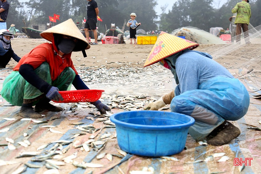 Bà con ngư dân xã Xuân Yên (Nghi Xuân – Hà Tĩnh) đang tranh thủ thời tiết thuận lợi, tích cực bám biển để mang về những mẻ cá trích tươi ngon.