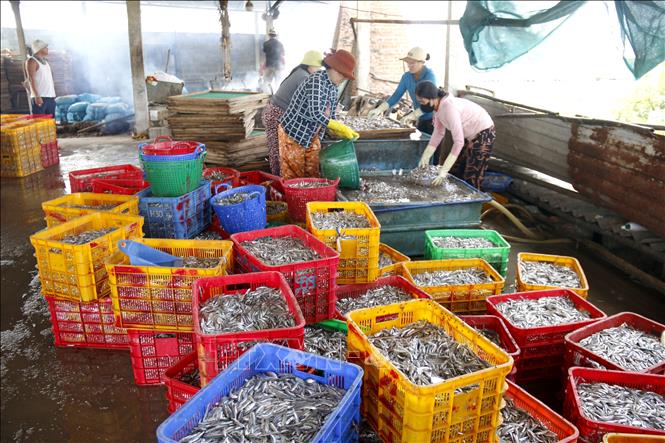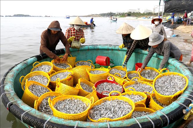 Cá cơm tươi và sản lượng dồi dào không chỉ mang lại thu nhập ổn định cho hàng chục nghìn ngư dân tỉnh Lâm Đồng mà còn tạo việc làm cho lao động trên bờ. Ảnh: Nguyễn Thanh/TTXVN