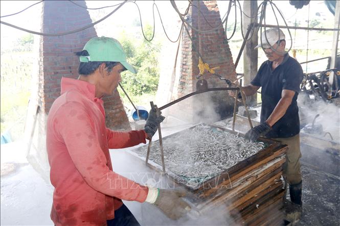 Thời điểm này, các lò hấp cá cơm tại phường Mũi Né, tỉnh Lâm Đồng cũng làm việc hết công suất để chế biến cá, đưa đi tiêu thụ. Ảnh: Nguyễn Thanh/TTXVN