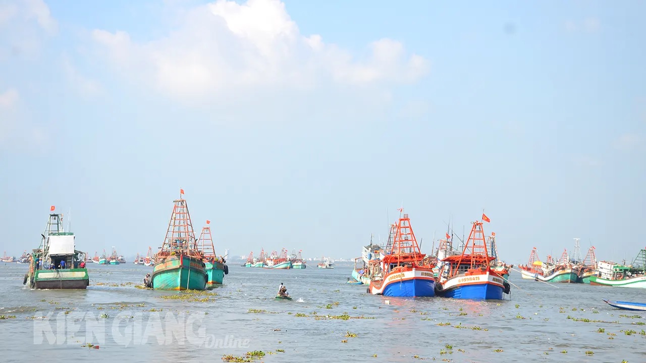 Ghi nhận tại Trạm kiểm soát biên phòng Kênh Dài, Đồn Biên phòng Tây Yên, huyện An Biên chiều mùng 9 tết, trên bến tấp nập tàu cá neo đậu làm thủ tục xuất bến. Các thuyền trưởng tranh thủ lên trạm nộp giấy tờ làm thủ tục để được xuất bến càng sớm càng tốt. Trên tàu, các thủy thủ tranh thủ thu xếp hành lý, mua thêm vài vật dụng cá nhân cần thiết mang theo, lương thực, thực phẩm được chủ tàu cho bốc xếp ngay ngắn trên tàu.