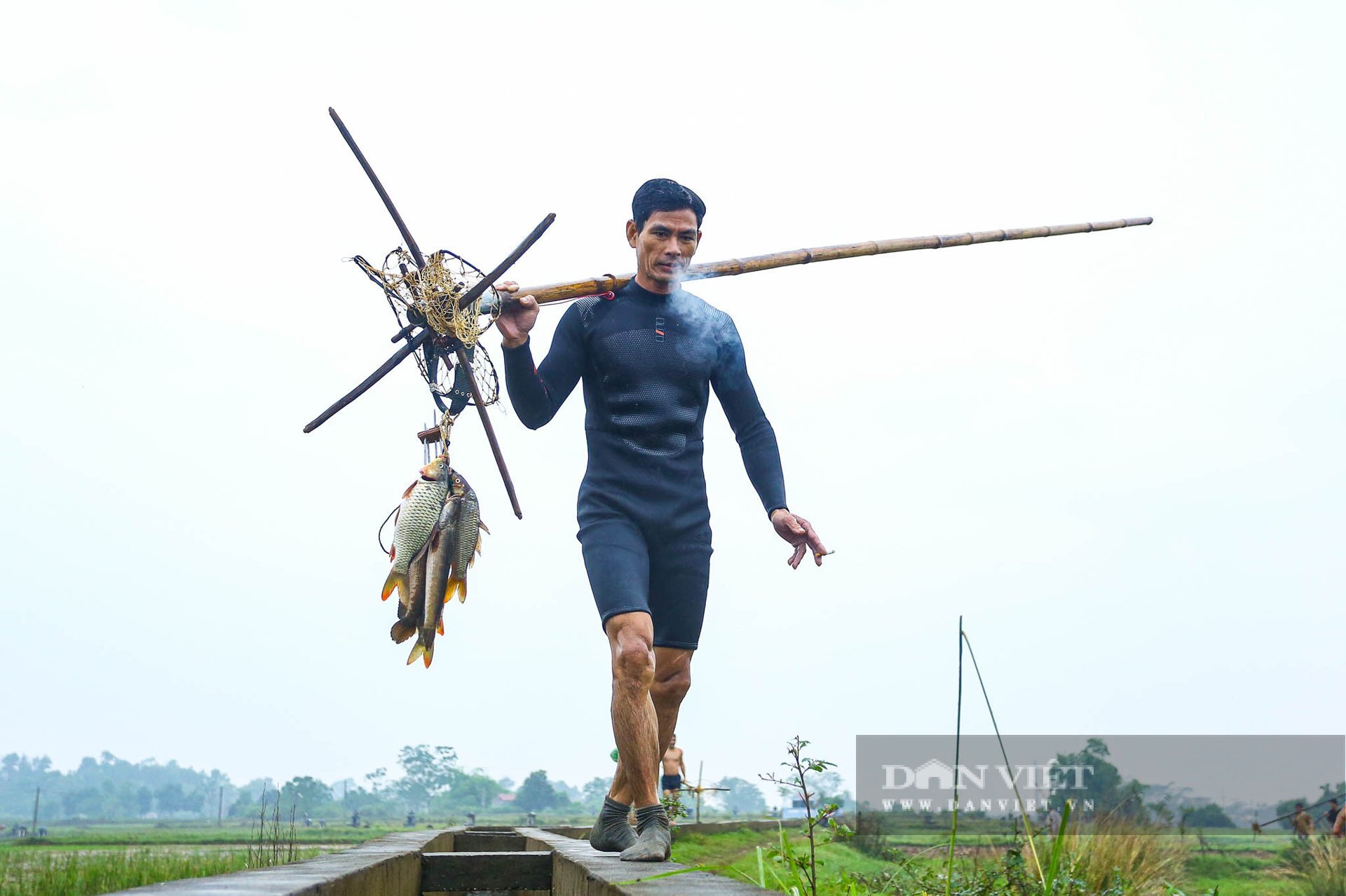 Những ngày đầu đông, khi nước sông Tích Giang xuống thấp, người dân xã Phúc Thọ (Hà Nội) lại rủ nhau xuống sông tham gia dập sào bắt cá. Âm thanh sào tre, tiếng hò gọi rộn ràng xen lẫn tiếng cười nói tạo nên khung cảnh nhộn nhịp, vui vẻ.