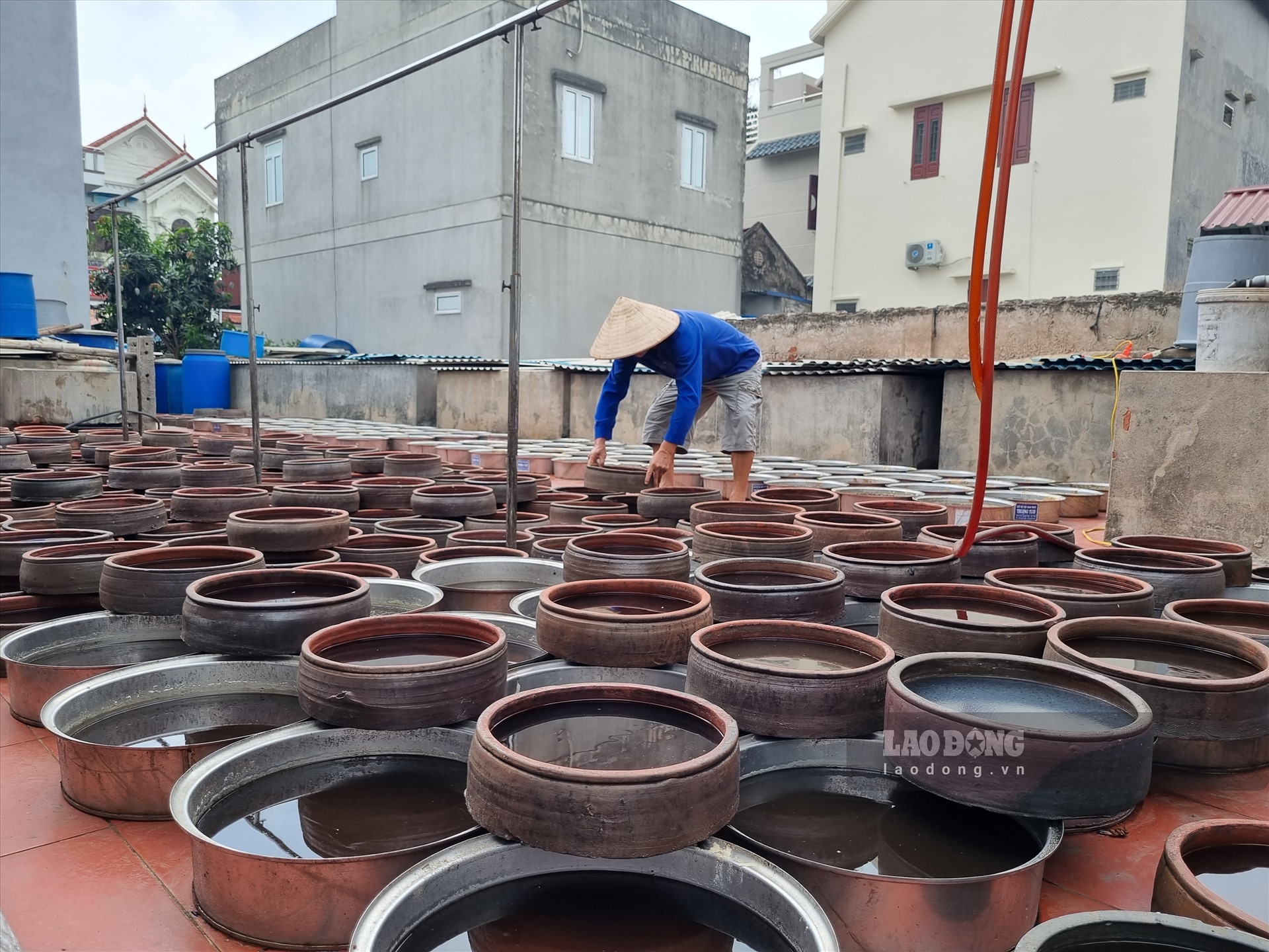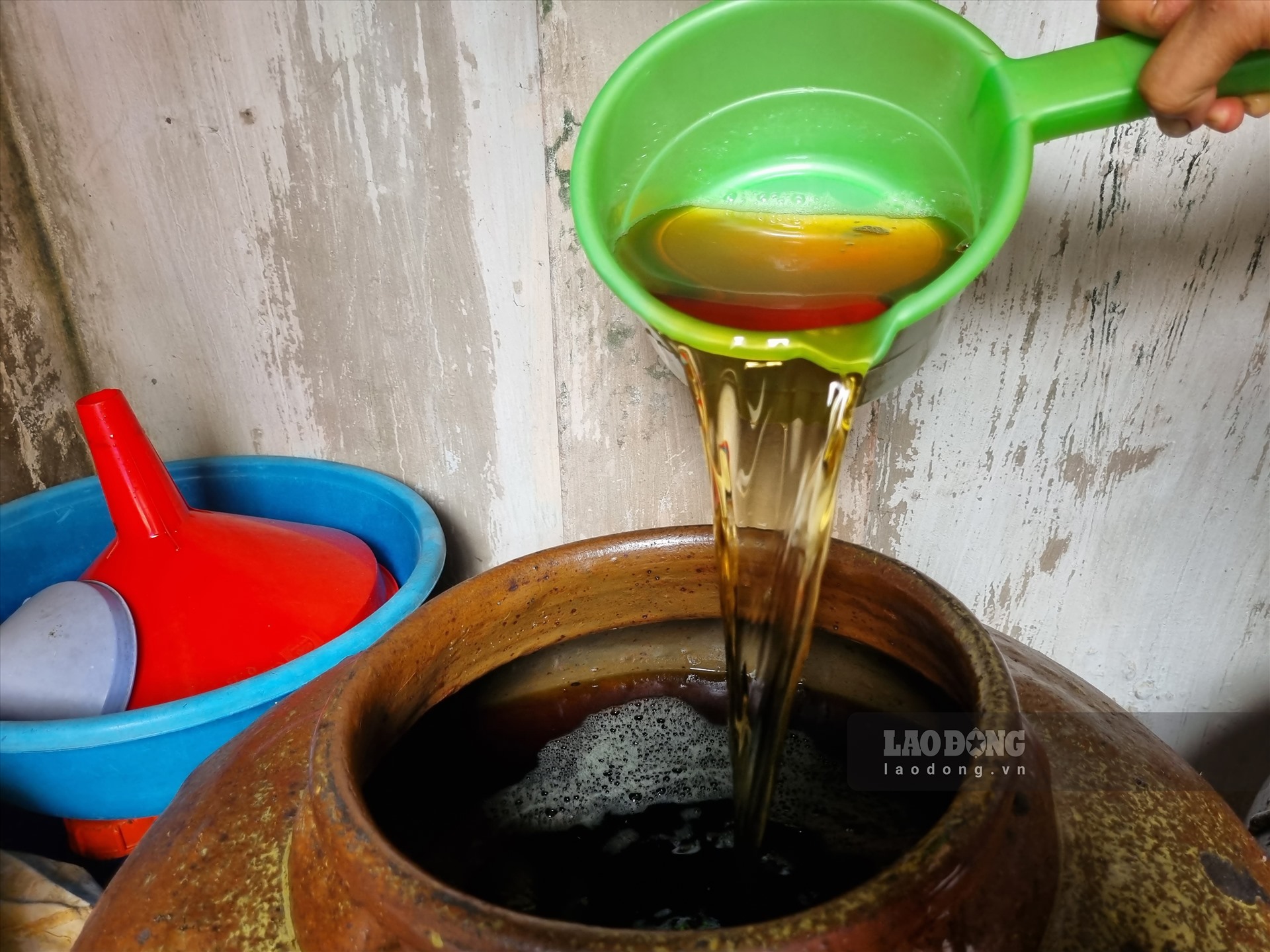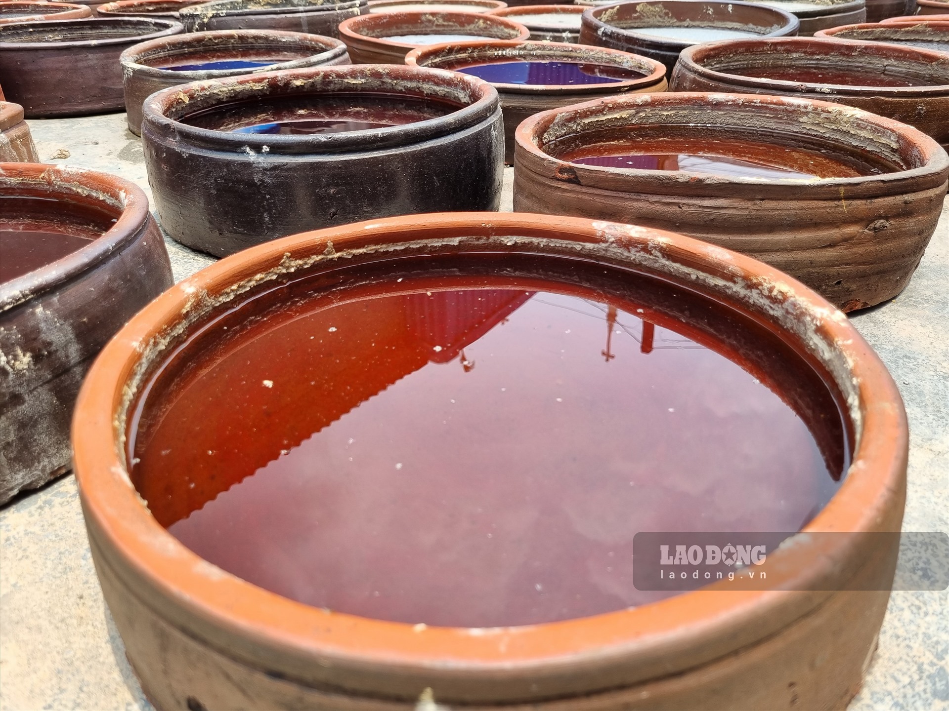 Về vùng biển Giao Thủy những ngày hè oi bức, không khó để thấy được cảnh người dân làng nghề Sa Châu (xã Giao Nhân, huyện Giao Thuỷ) đang cần mẫn chắt lọc từng giọt mắm trong veo với màu cánh gián đẹp mắt và hương thơm đặc trưng.