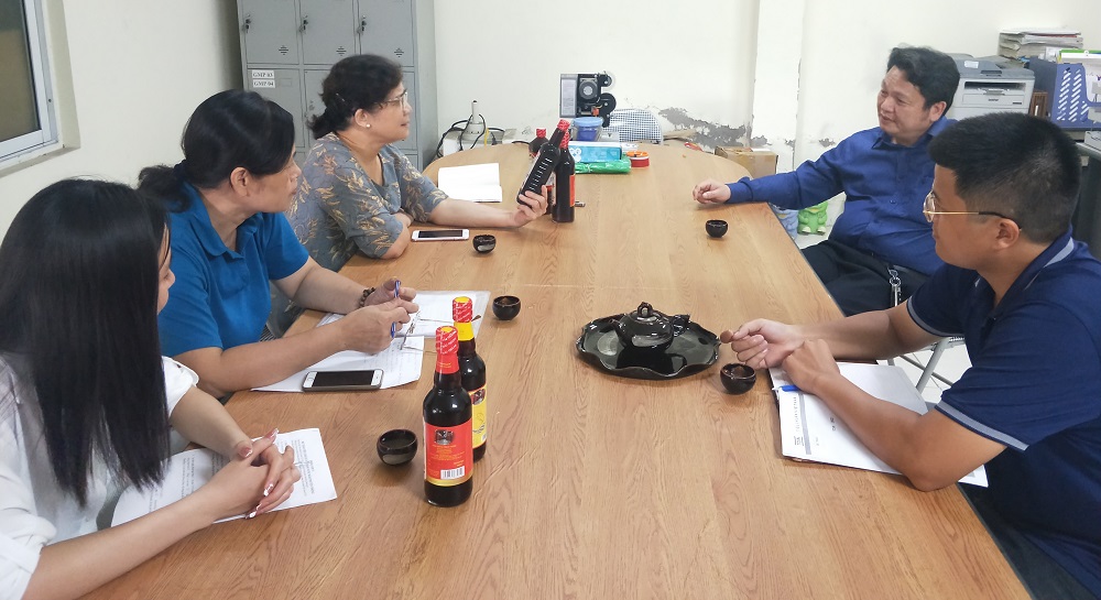 Giám đốc Đỗ Thương Hiền và Phó giám đốc Đỗ Văn Kiểm (thứ tư và năm từ trái sang) tiếp và làm việc với đoàn công tác của Hiệp hội Nước mắm truyền thống Việt Nam do Phó chủ tịch kiêm Tổng thư ký Trần Thị Dung dẫn đầu cùng với chuyên gia thực phẩm, tiến sỹ Nguyễn Thị Việt Anh (thứ ba và thứ hai từ trái sang).