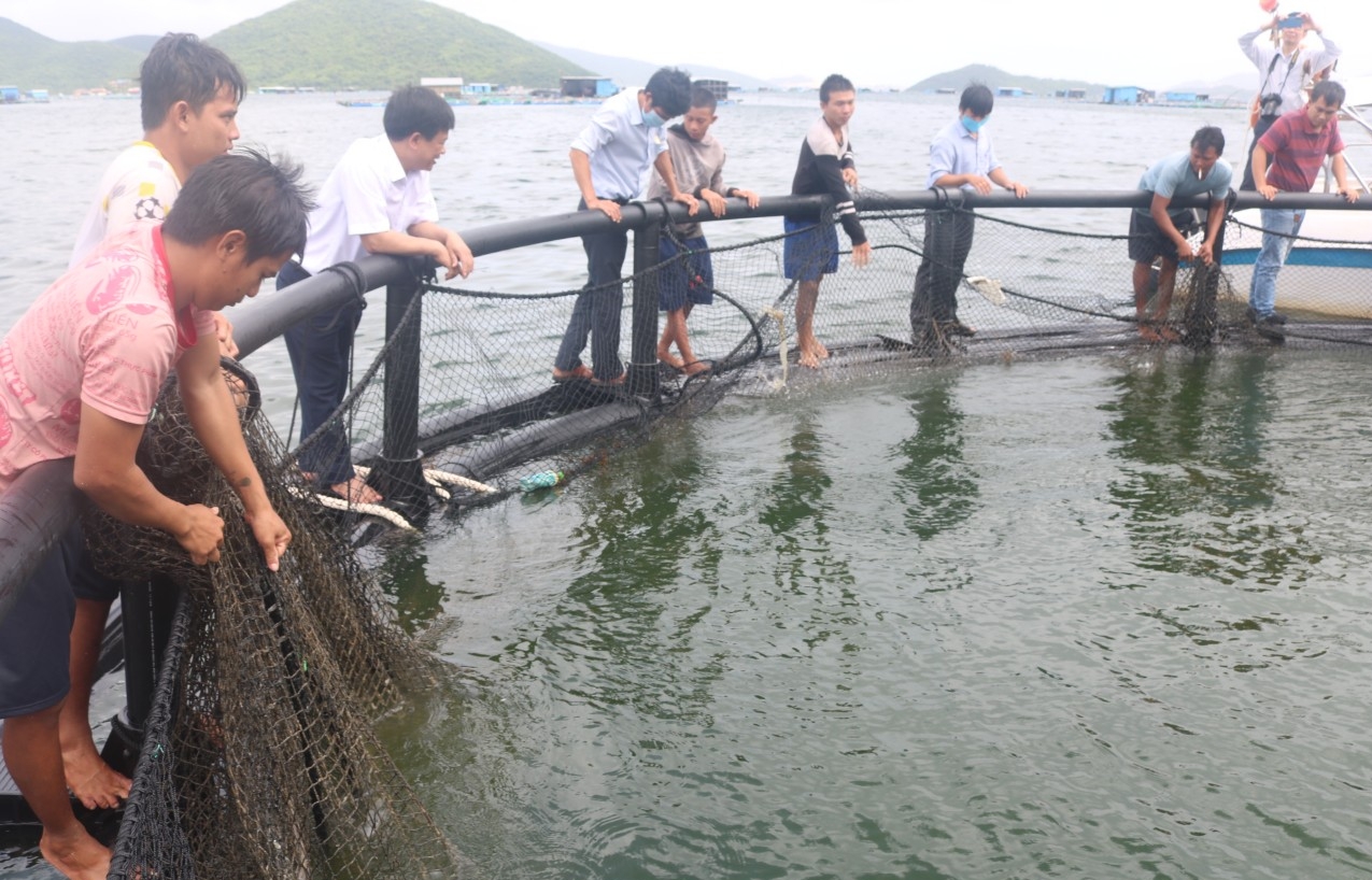 Người nuôi có thể tham khảo mô hình nuôi thủy sản bằng lồng HDPE thân thiện môi trường trên vịnh Vân Phong (Khánh Hòa). Ảnh: KS.