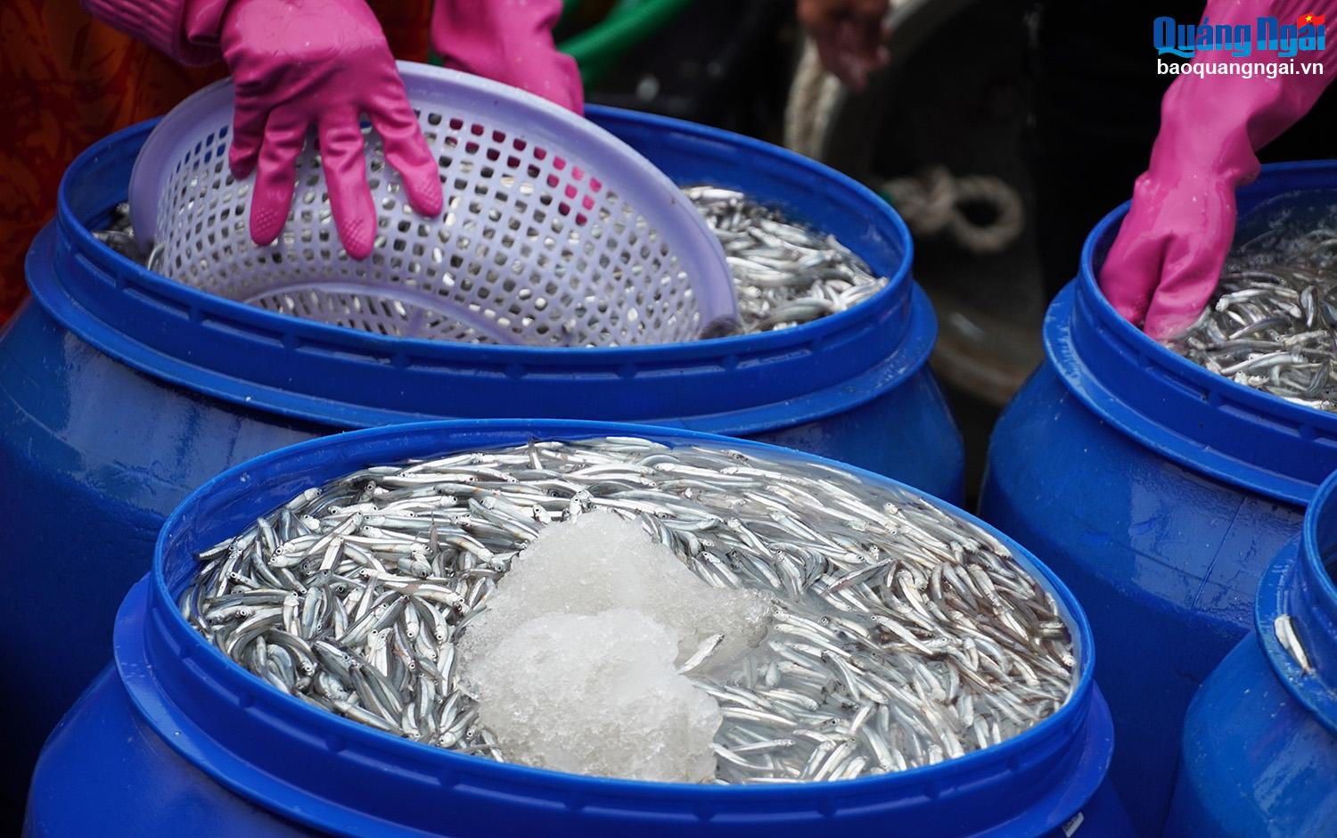 Ngư dân Cao Sin, ở thôn Kỳ Xuyên, xã Tịnh Kỳ cho biết, tàu của anh có 12 thuyền viên, khởi hành từ 14 giờ ngày hôm trước đi đánh bắt ở vùng biển Quảng Ngãi, đến sáng sớm ngày hôm nay cập bờ được hơn 7 tấn cá cơm than. Đây là năm mà ngư dân bội thu mùa cá cơm nhất từ trước tới nay. Với giá bán tại cảng là 14 nghìn đồng/kg, tàu thu về khoảng 100 triệu đồng.