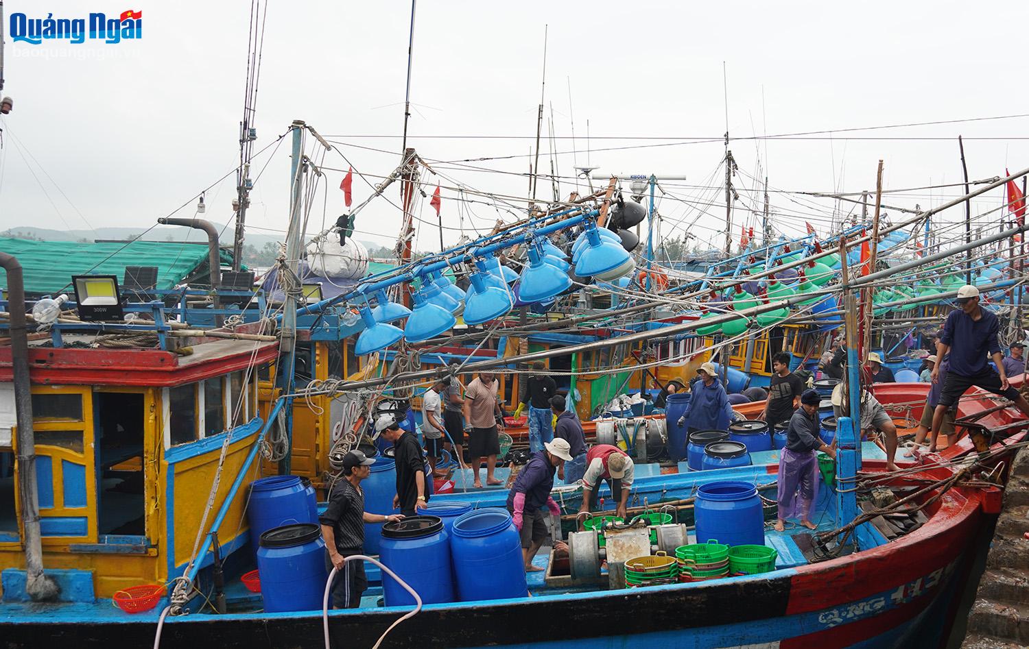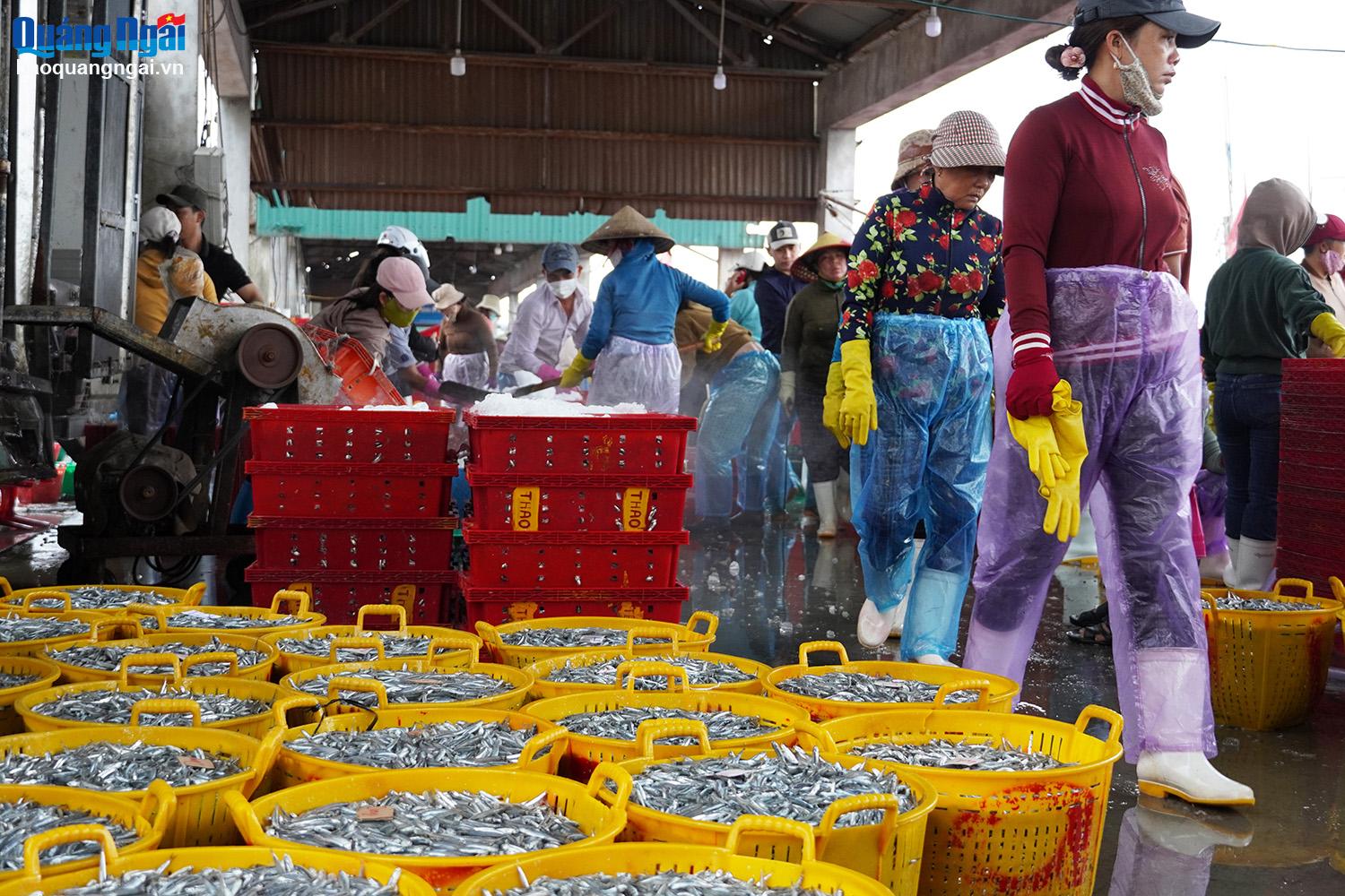 Không chỉ ngư dân, những người lao động làm công việc phân loại cá, bốc xếp tại cảng Tịnh Kỳ cũng có nguồn thu nhập ổn định từ 300 – 400 nghìn đồng/ngày.
