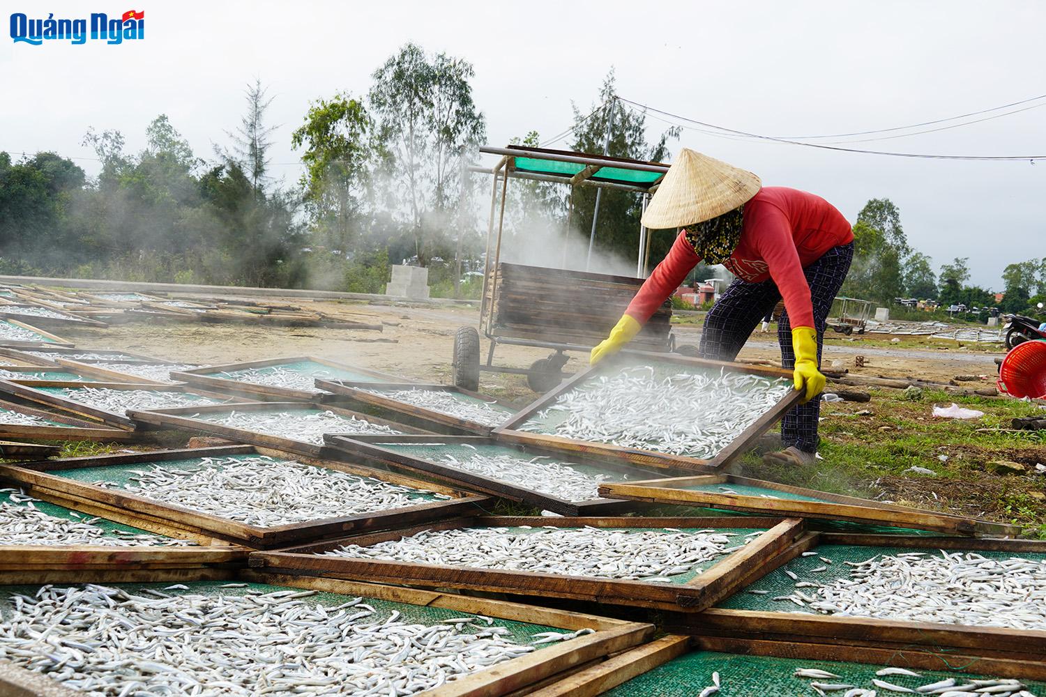 Vào những ngày này, đến xã Tịnh Kỳ (TP.Quảng Ngãi), đâu đâu cũng bắt gặp hình ảnh những vỉ cá cơm được phơi trải dài dọc theo những con đường.