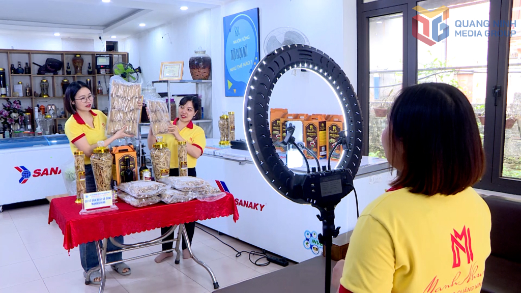 Nắm bắt được xu hướng phát triển của thương mại trực tuyến, chị Lương Thị Nhung (chủ cơ sở sản xuất Sá Sùng Mạnh Nhung, huyện Vân Đồn) đã lập kênh Tiktok, facebook, thường xuyên livestream bán hàng, giới thiệu sản phẩm. Các mặt hàng có lượng tiêu thụ ổn định, mang lại nguồn doanh thu đáng kể so với phương thức bán hàng truyền thống trước đây. Chị Lương Thị Nhung chia sẻ: Tôi thường tham gia các buổi tập huấn để có nhiều kiến thức về thương mại điện tử. Mỗi phiên livestream tôi bán được tầm 500 – 700 đơn hàng, trong đó nhiều khách hàng ngoài tỉnh. Tôi cũng thường áp dụng giảm giá từ 10% – 20 % cho khách hàng mua qua livestream.