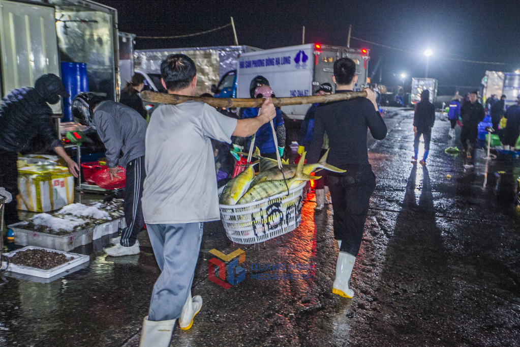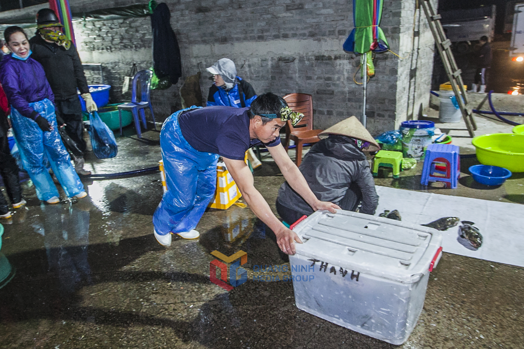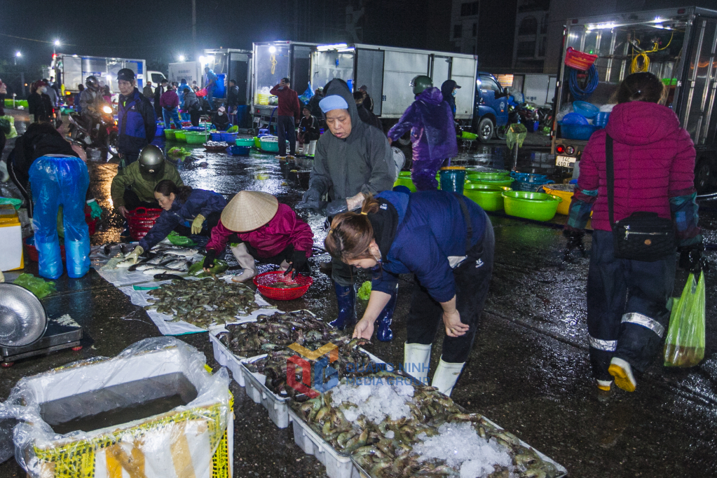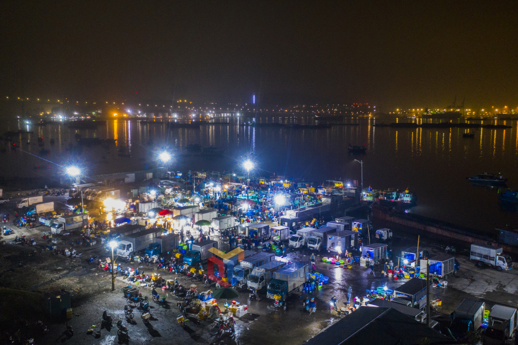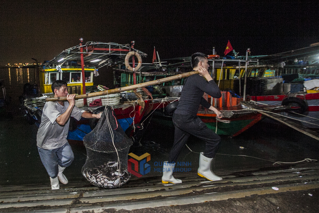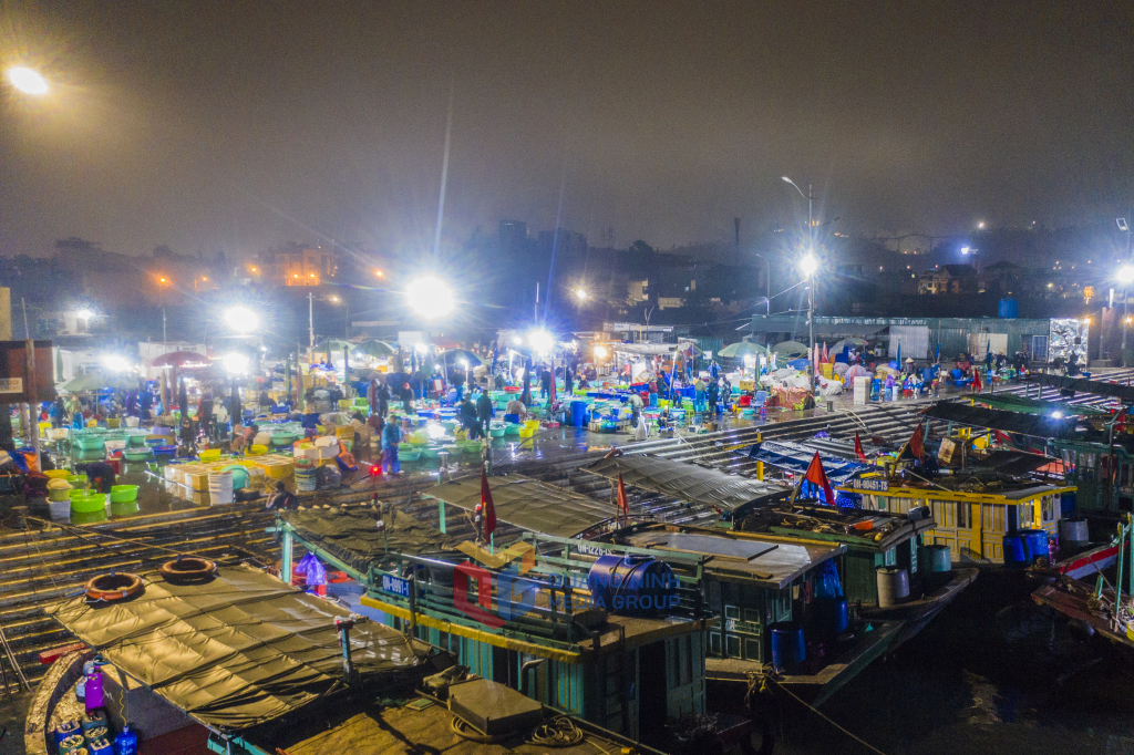 Trên bến dưới thuyền, từ tờ mờ sáng khi thành phố vẫn còn sáng đèn, chợ cá Hòn Gai đã hoạt động tấp nập, nhộn nhịp.