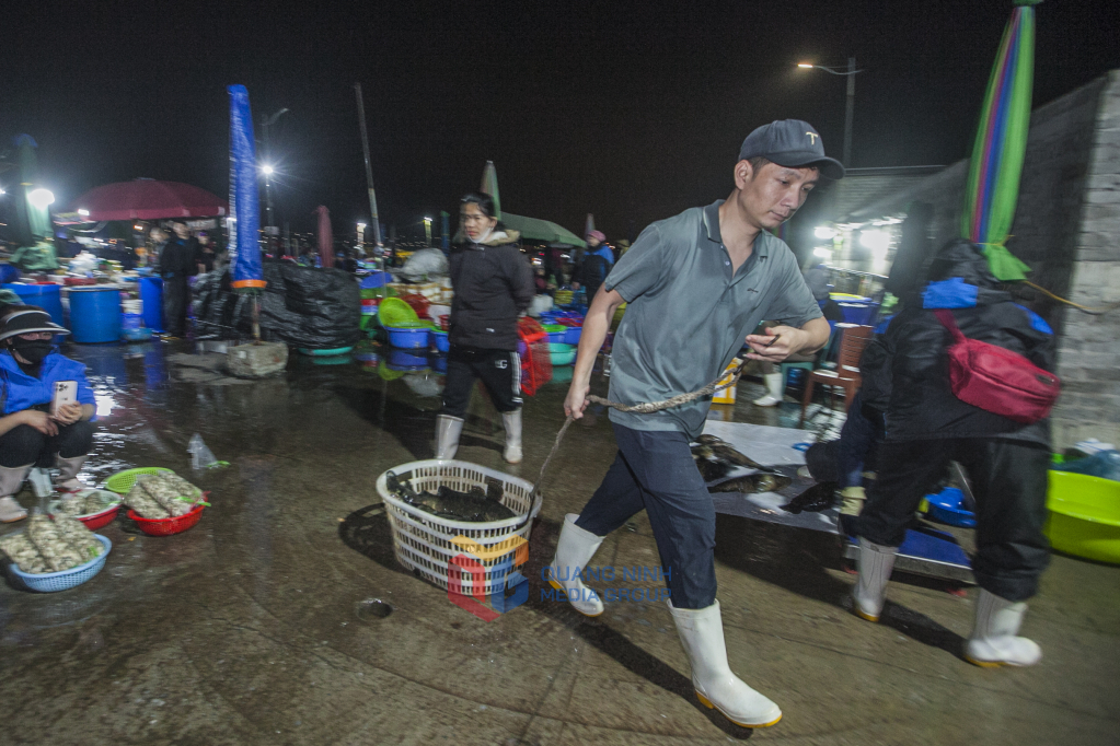 Từ sáng sớm, chợ cá Hòn Gai đã tấp nập thu hút rất nhiều tiểu thương và người dân trong khu vực đến mua hải sản.
