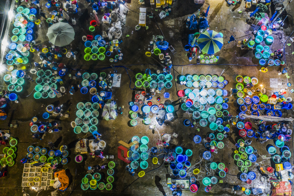 Vẻ đẹp của chợ cá Hòn Gai khi nhìn từ trên cao.