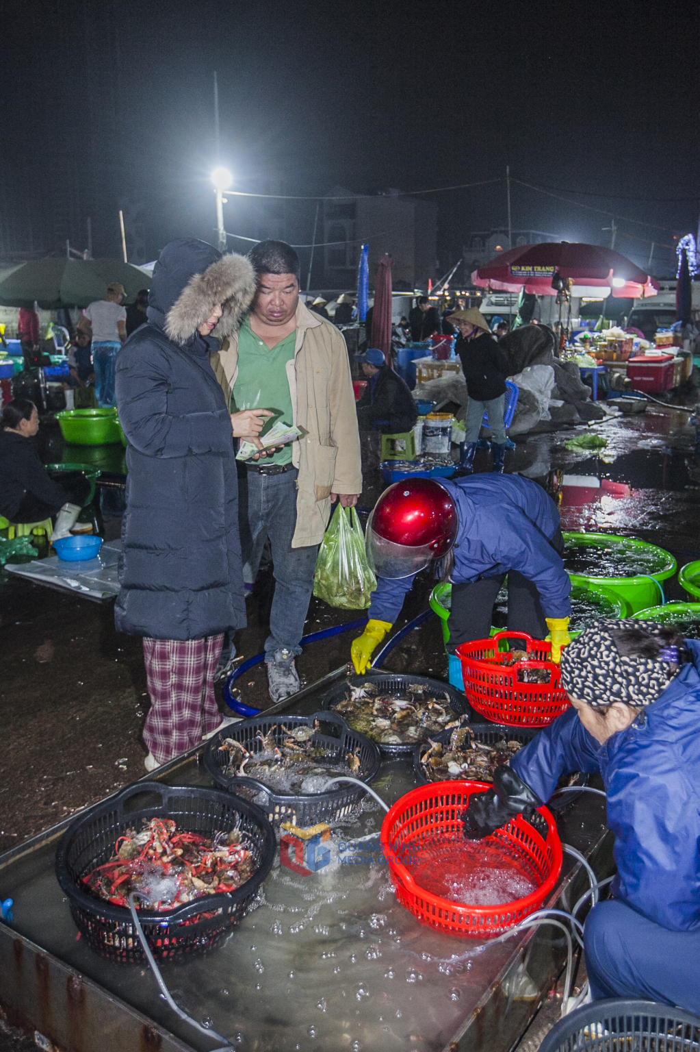 Rất nhiều người dân dậy sớm đi chợ cá để chọn mua hải sản tươi sống phục vụ bữa ăn gia đình.