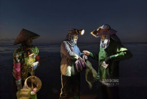 Ngay từ tờ mờ sáng, người dân đã có mặt ở khu vực biển để bắt đầu công việc. Thời điểm thuận lợi nhất để người dân bắt ốc móng tay là khi thủy triều xuống nên người dân làm nghề này phải dậy sớm, từ 3h hoặc 4h sáng.