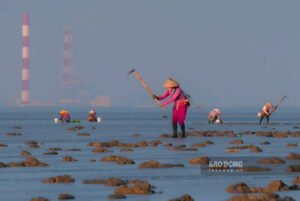 Từ tờ mờ sáng, ở nhiều xã ven biển như Thái Thụy và Đông Thụy Anh, người dân đã ra bờ biển để bắt ốc móng tay.