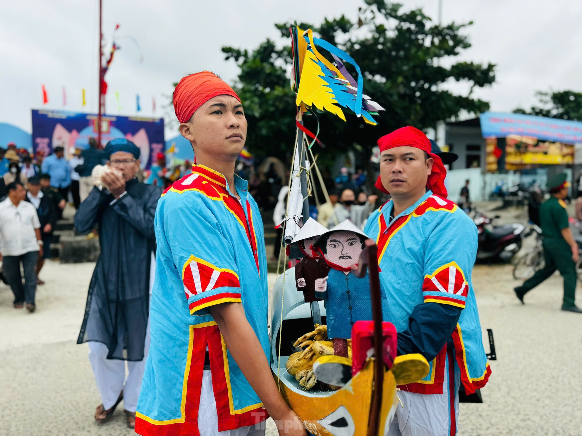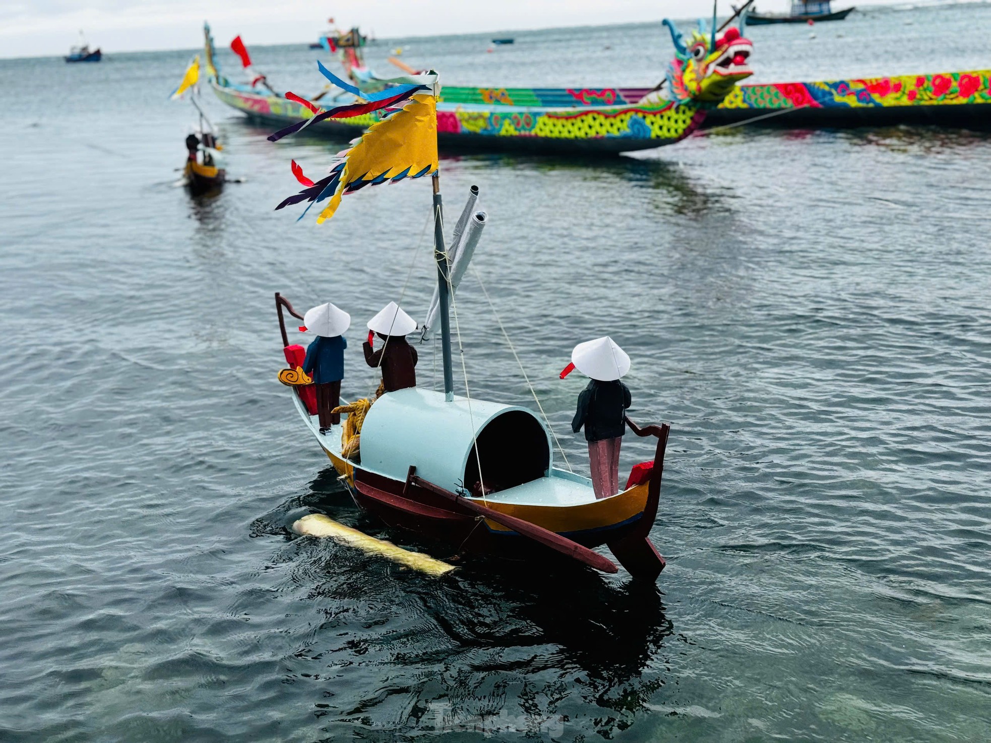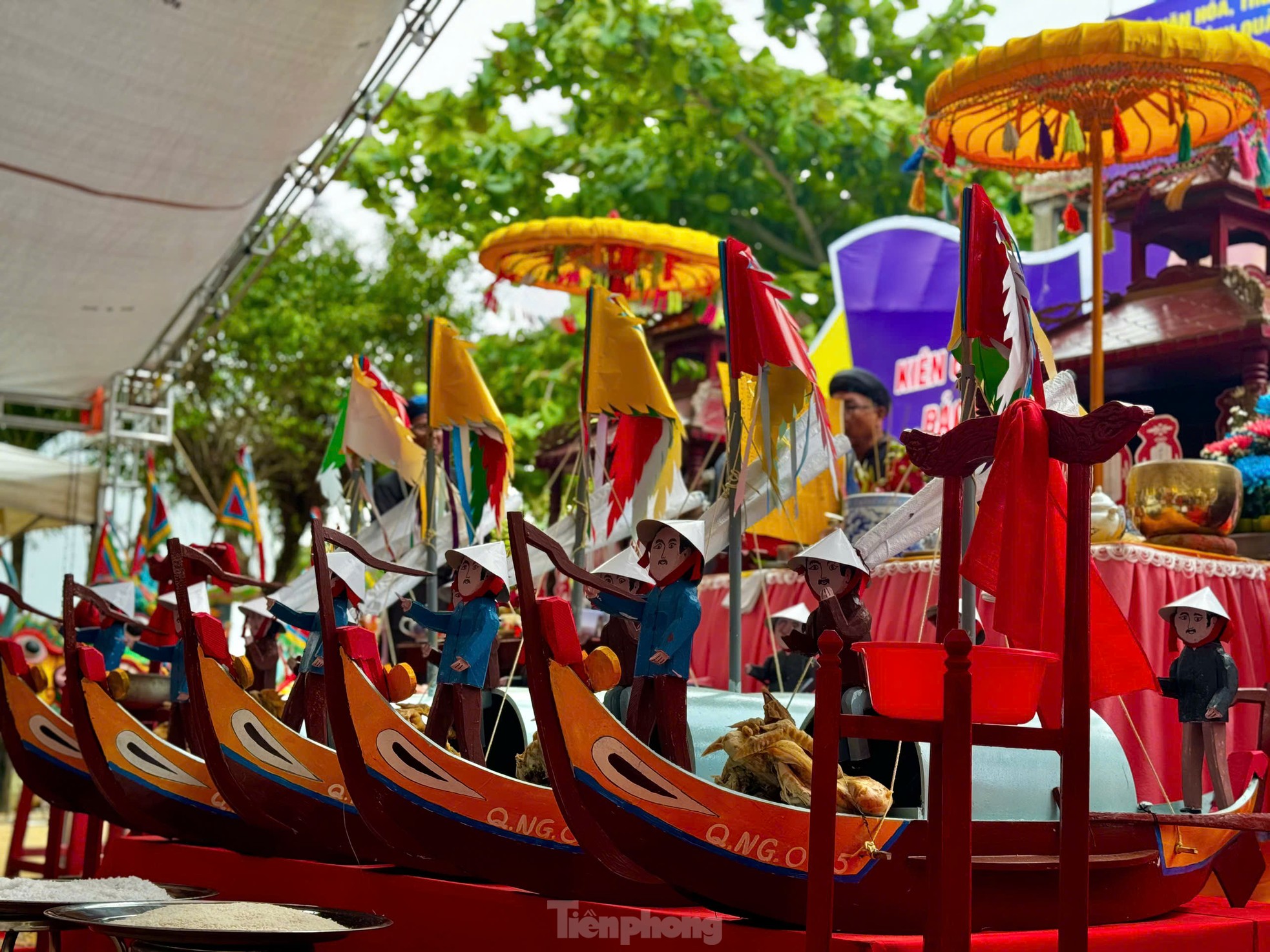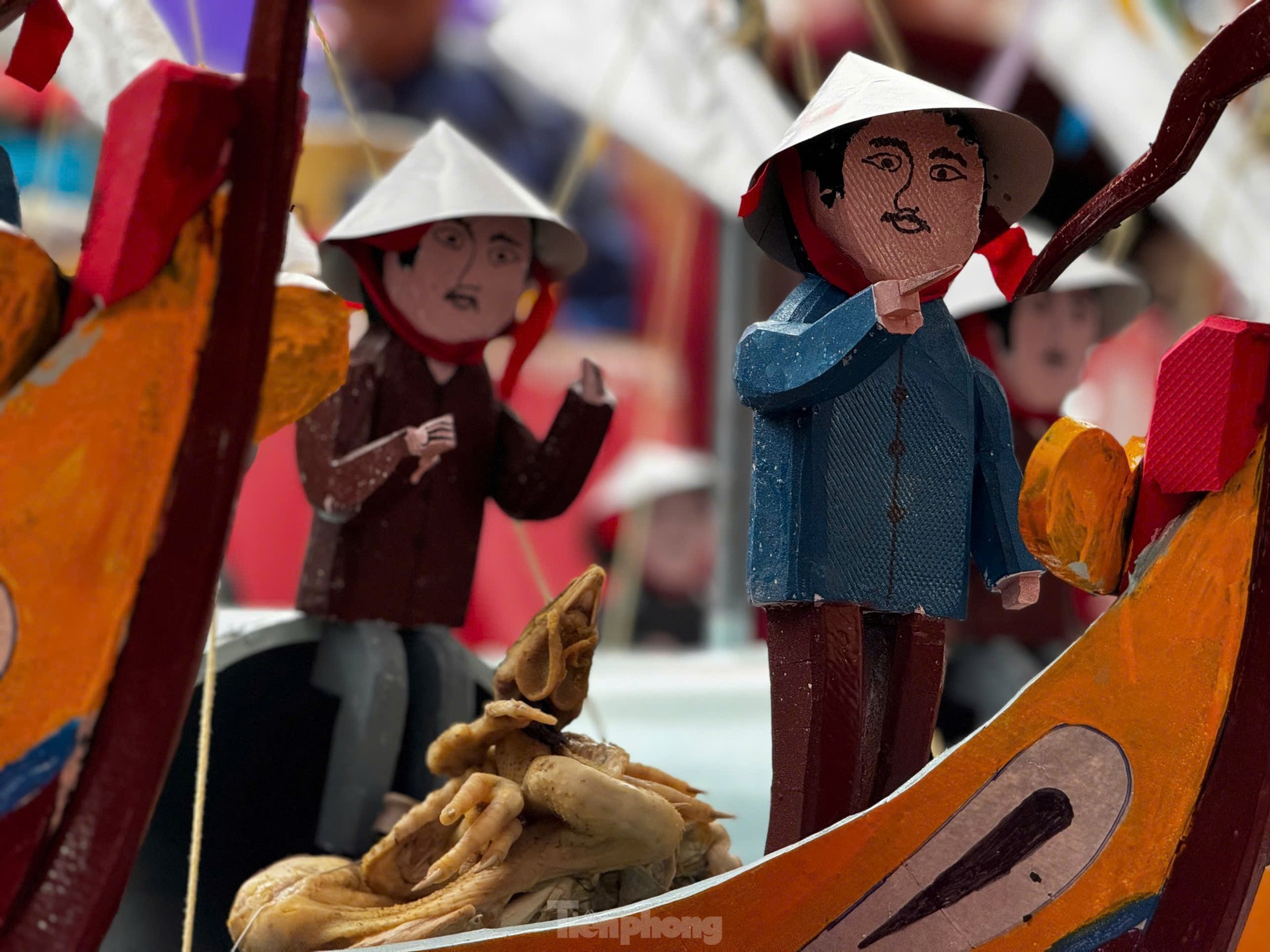 Một lễ vật không thể thiếu trong lễ khao lề thế lính là thuyền câu và bài vị của những binh phu đã bỏ mình nơi dặm dài biển cả. Ảnh: Nguyễn Ngọc.