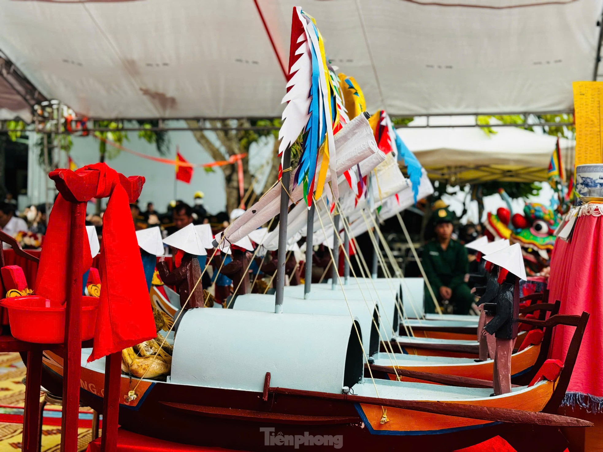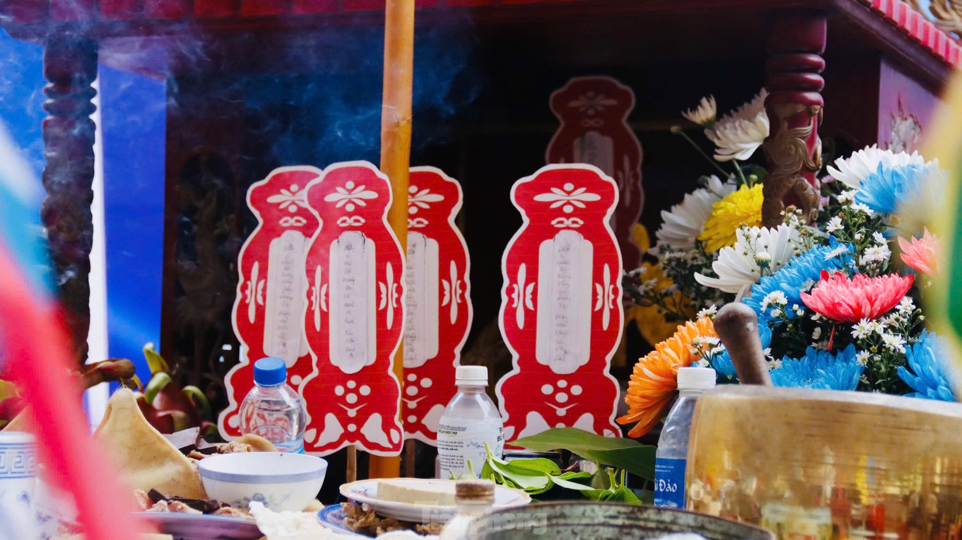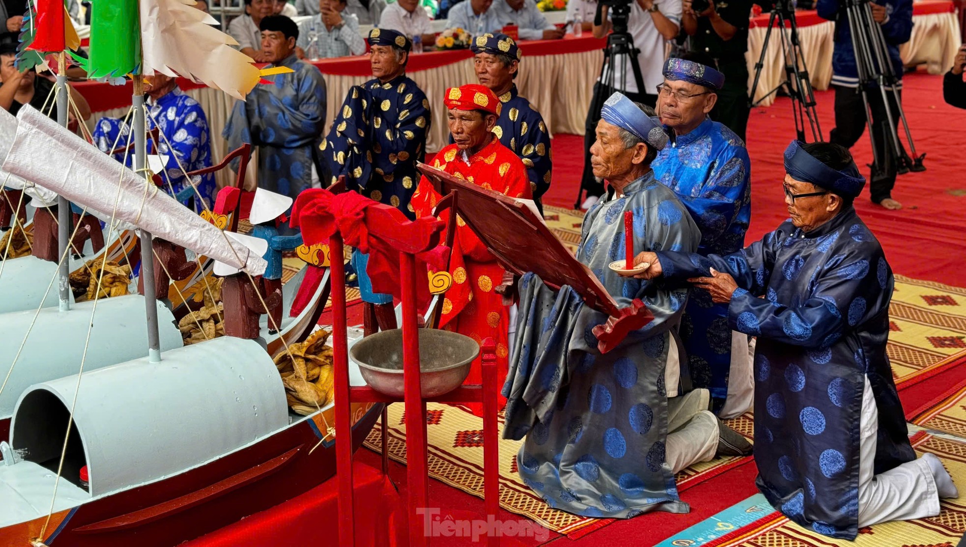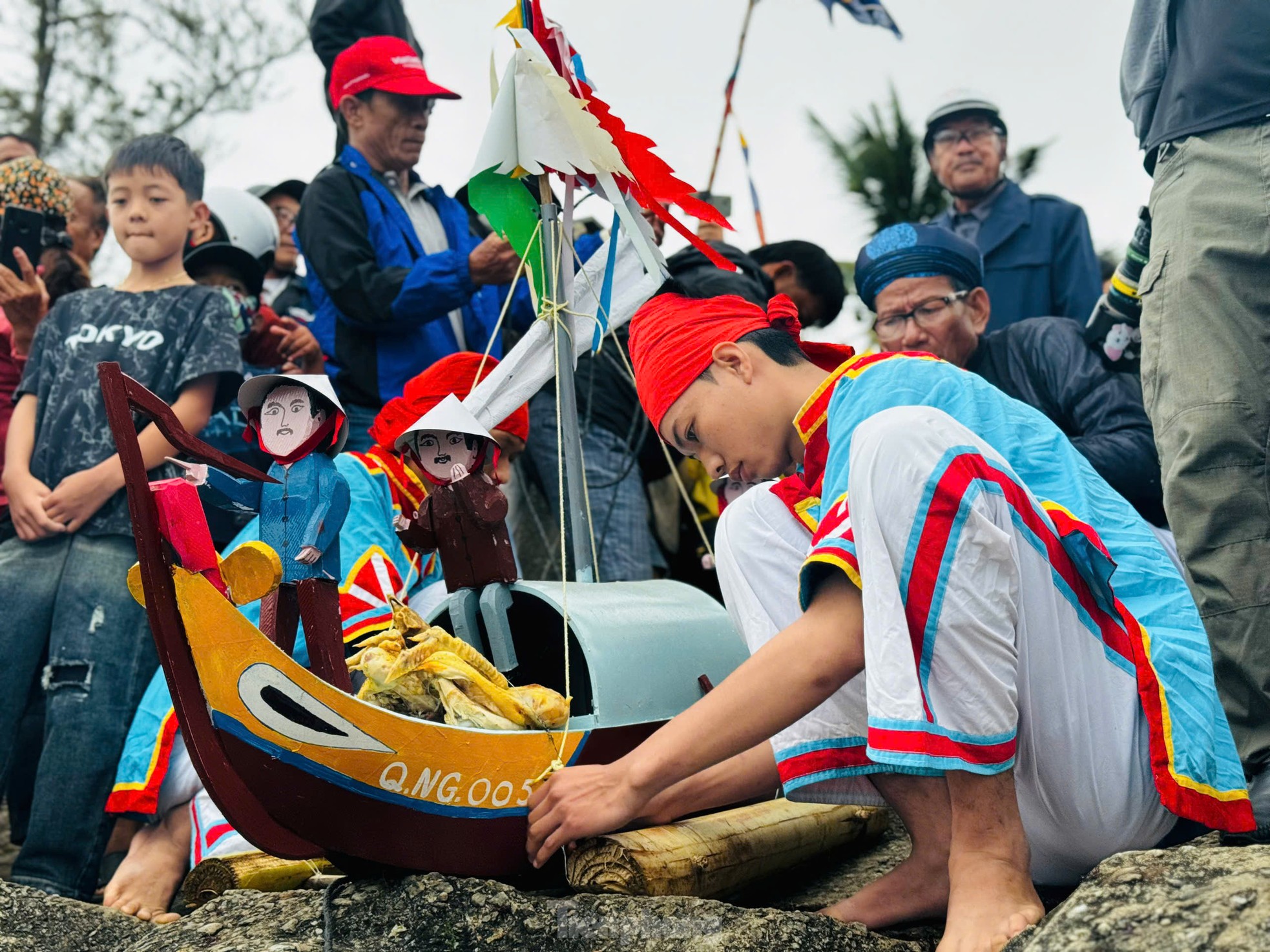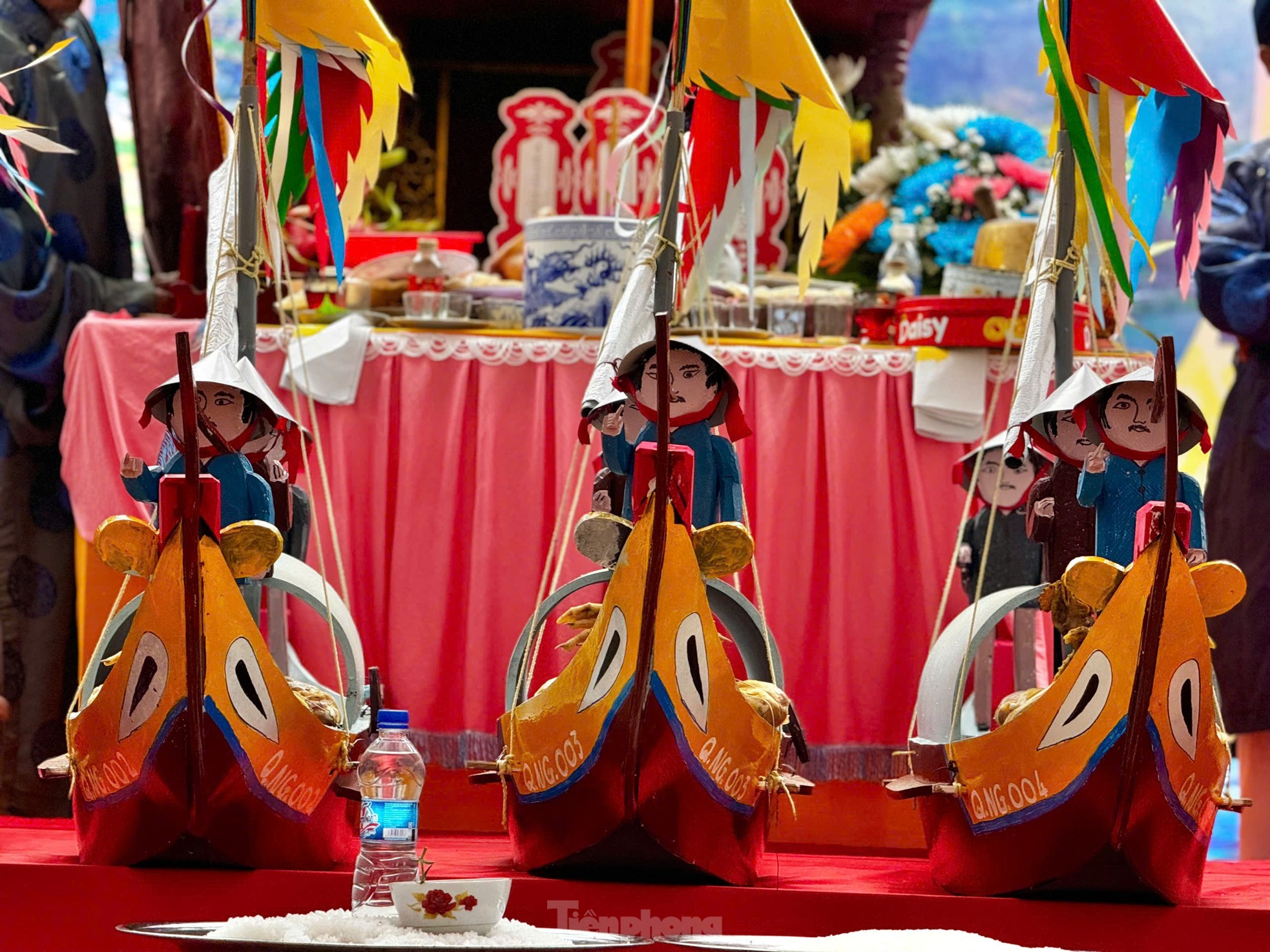 Một lễ vật không thể thiếu trong lễ khao lề thế lính là thuyền câu và bài vị của những binh phu đã bỏ mình nơi dặm dài biển cả. Ảnh: Nguyễn Ngọc.