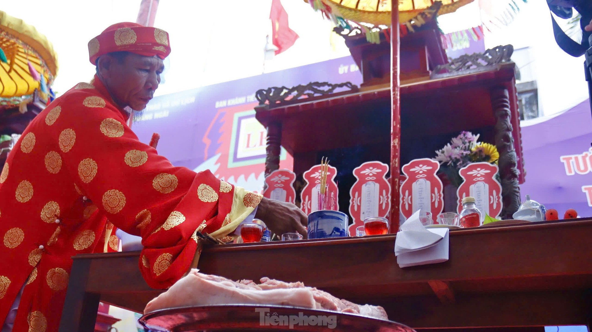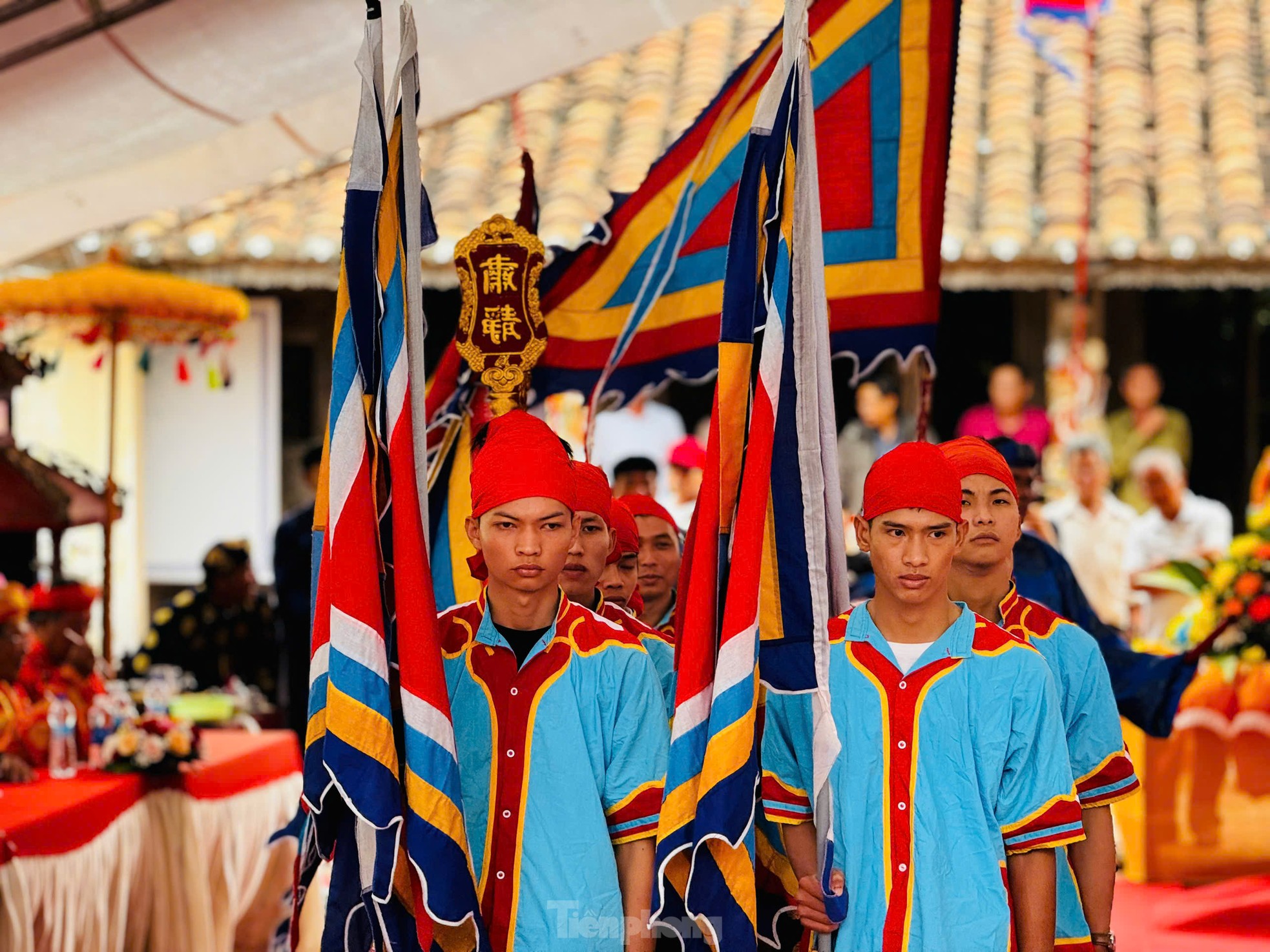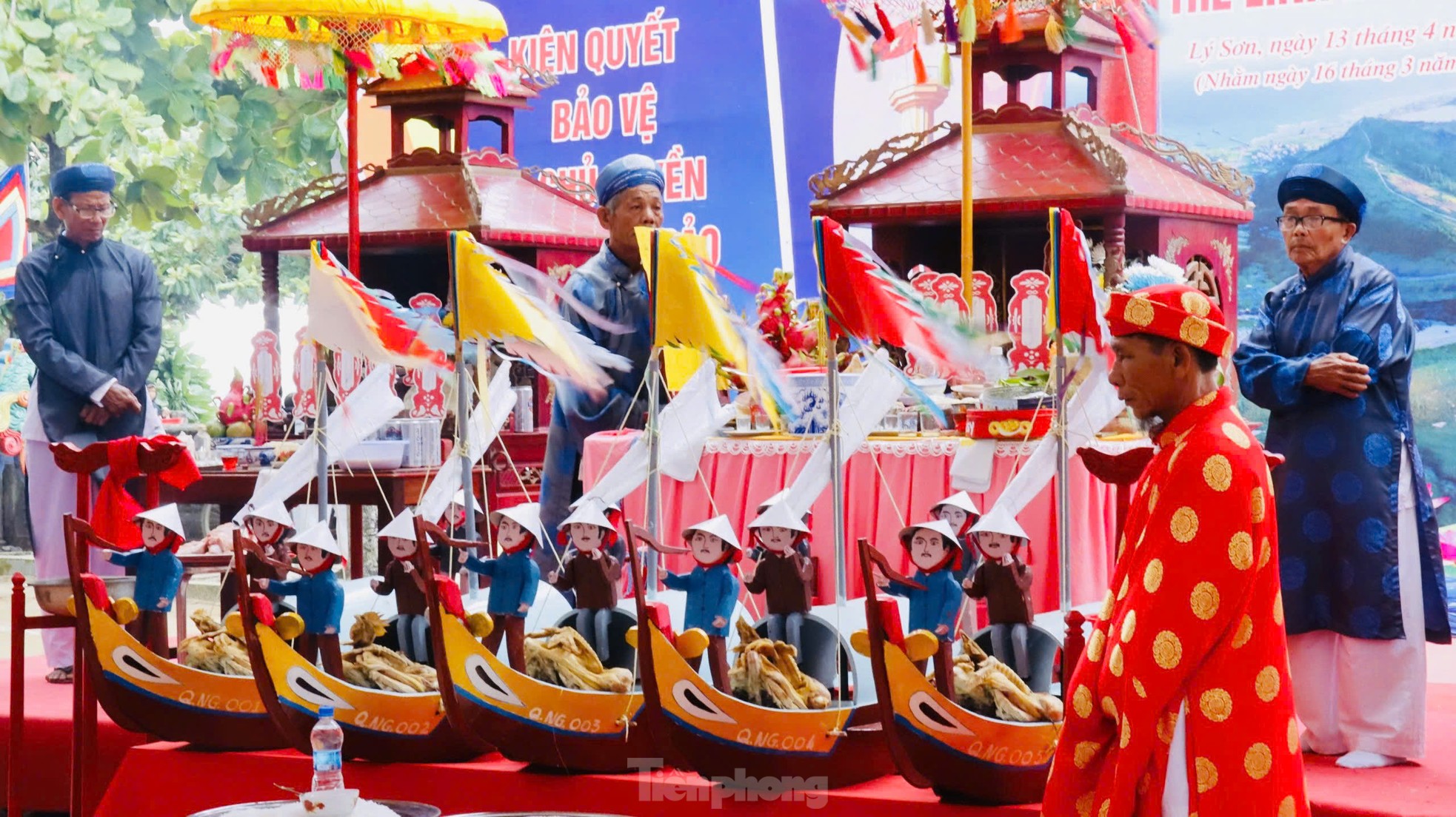 Sáng 13/4/2025 (tức 16/3 âm lịch), Ban Khánh tiết Đình làng An Vĩnh (huyện Lý Sơn) tổ chức Lễ Khao lề thế lính Hoàng Sa. Đây là hoạt động nằm trong khuôn khổ Tuần lễ Du lịch tỉnh Quảng Ngãi năm 2025. Ảnh: Nguyễn Ngọc.
