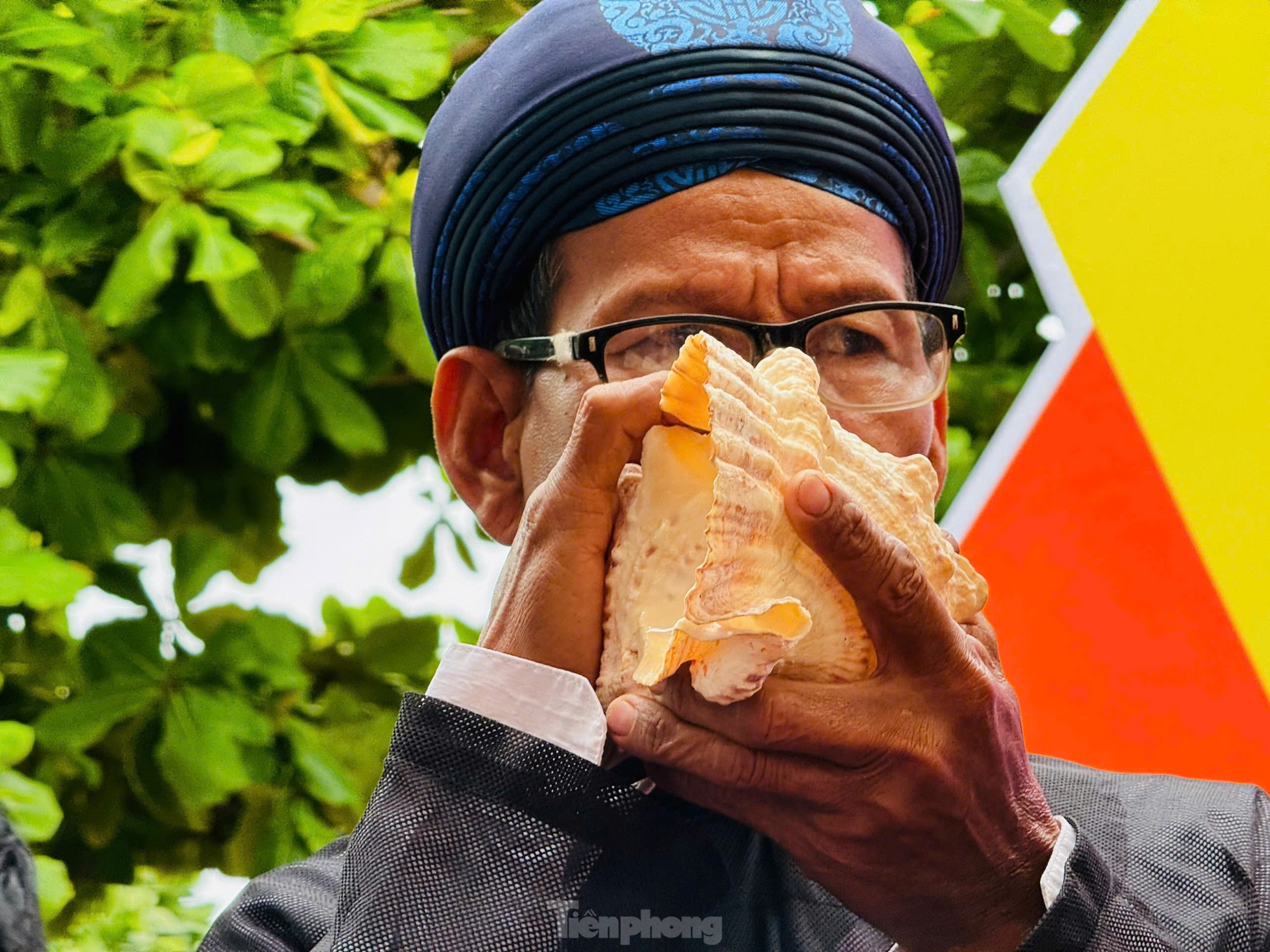 Thổi ốc u đưa thuyền câu ra biển. Ảnh: Nguyễn Ngọc