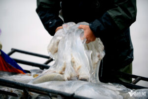 Nhờ nhu cầu tiêu thụ lớn, đặc biệt vào mùa du lịch biển, sứa trở thành nguồn hải sản được nhiều du khách ưa chuộng. Với vị giòn sần sật đặc trưng, sứa không chỉ là món ăn khoái khẩu mà còn giúp nhiều ngư dân ven biển Thanh Hóa có thêm nguồn thu nhập ổn định trong những ngày đầu năm.