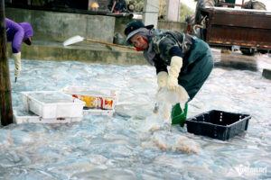Sau khi được đưa vào bờ, sứa được vận chuyển đến các điểm thu mua ven biển. Tại đây, thương lái sẽ tập kết rồi chuyển đến các khu sơ chế để làm sạch, tách phần thịt và chế biến thành nhiều món ăn đặc trưng như gỏi sứa, nộm sứa hay sứa muối.