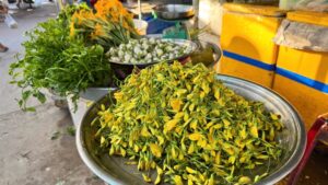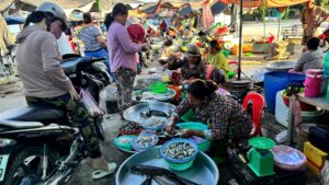 Thông thường, chợ mở bán vào khoảng 6 giờ 30, nhưng mùa này, người dân họp chợ sớm hơn do có nhiều sản vật thu hoạch từ cánh đồng nước nổi mang ra bán như: cá linh, cá sát, cá chạch, tép lóng, ốc lác, chuột đồng, bông súng, bông điên điển, rau muống, càng cua…