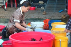 Theo bà Ngô Thị Mỹ Uyên, tiểu thương có nhiều cá linh non, mùa này cá linh non ngon lắm, nấu lẩu, canh chua, kho lạt hết sẩy luôn. Các loại cá khác cũng tươi, ngon không kém phần, tất cả đều là sản vật thiên nhiên ban tặng cho người dân vùng này.