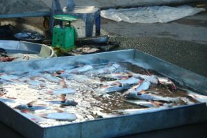 Bên cạnh đó, còn có những thau cá nhỏ do các hộ gia đình đánh bắt, tự mang ra chợ bán.